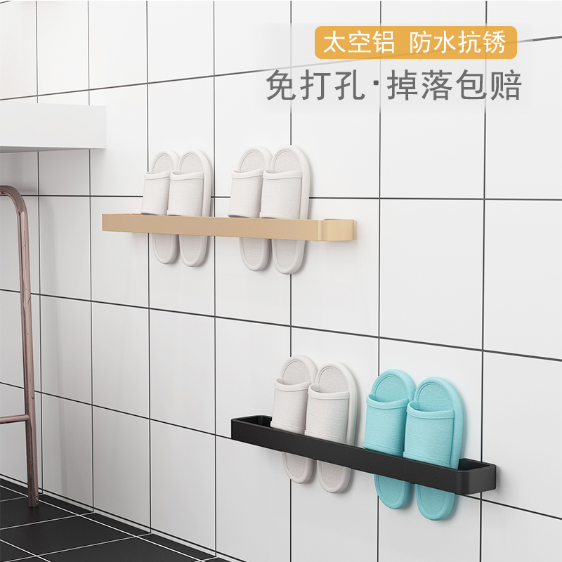 Bathroom slippers rack wall-mounted punch-free aluminum alloy powder room shoe rack home living room door rear rack
