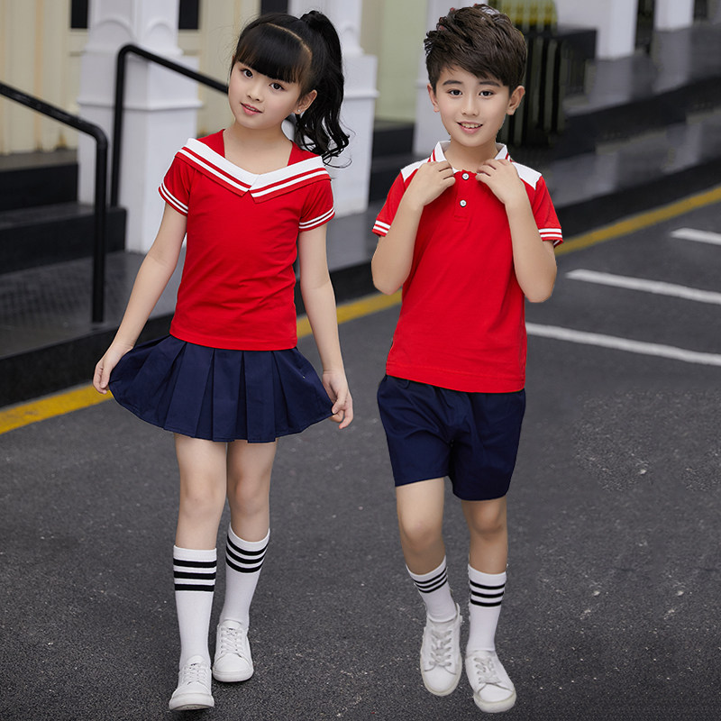 Kindergarten uniforms primary school uniforms summer clothes 2019 summer new cotton red sports suits class uniforms wholesale