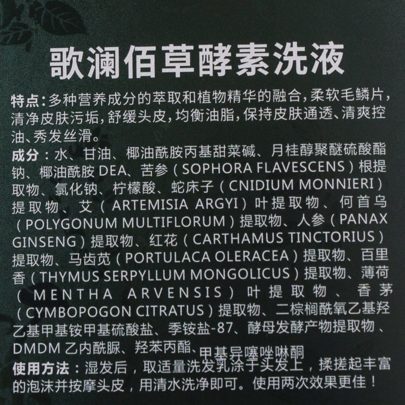 Ge Lan Bai Cao Enzyme Shampoo Silicone Oil-Free Shampoo Plant Anti-dandruff, Anti-itching, Refreshing and Oil Control for Pregnant Women