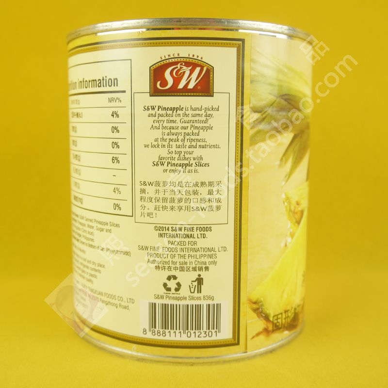 SW Pineapple Slices SW Sugar Water Pineapple Slices Canned 836g Pizza Fruit Baking dedicated