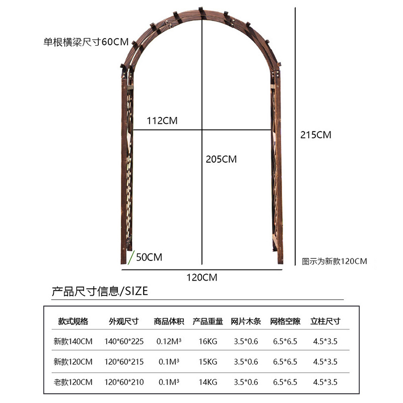 Arch flower stand climbing pergola Outdoor courtyard Wooden arch arch anti-corrosion carbonized solid wood Garden door Grape rack