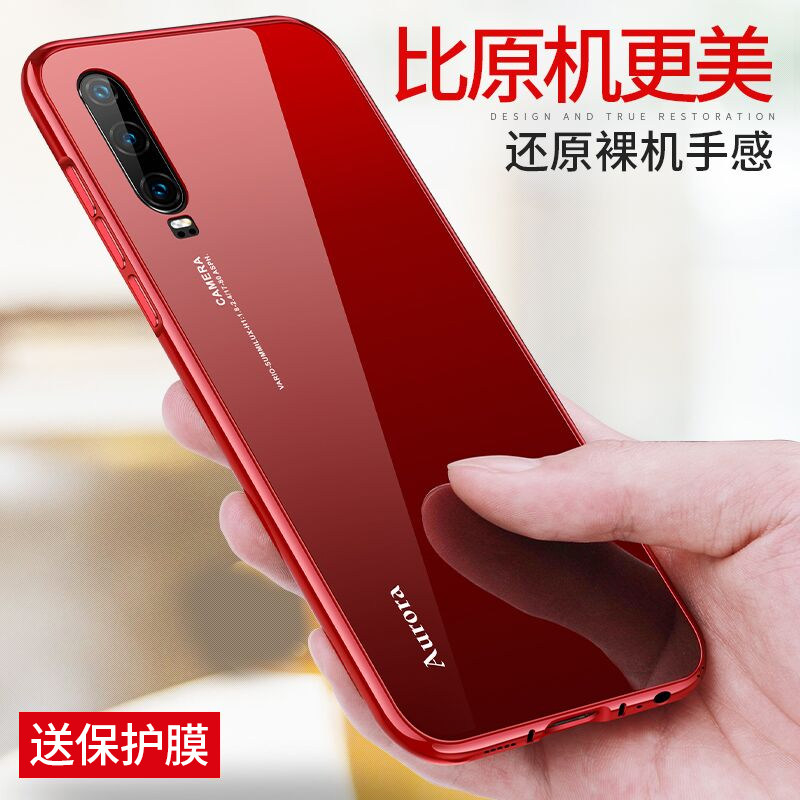 Suitable for Huawei p30pro mobile phone protective shell ultra-thin glass p30 metal red protective cover p3o net red female advanced new por all-inclusive anti-fall shell pr0 curved screen limited edition tide brand
