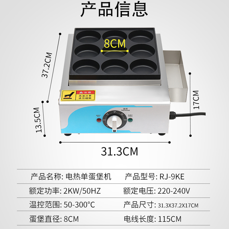 Charm kitchen egg burger machine merchants use electric hot wheel cake red bean cake machine to set up a non-stick pan 9-hole meat and egg burger stove