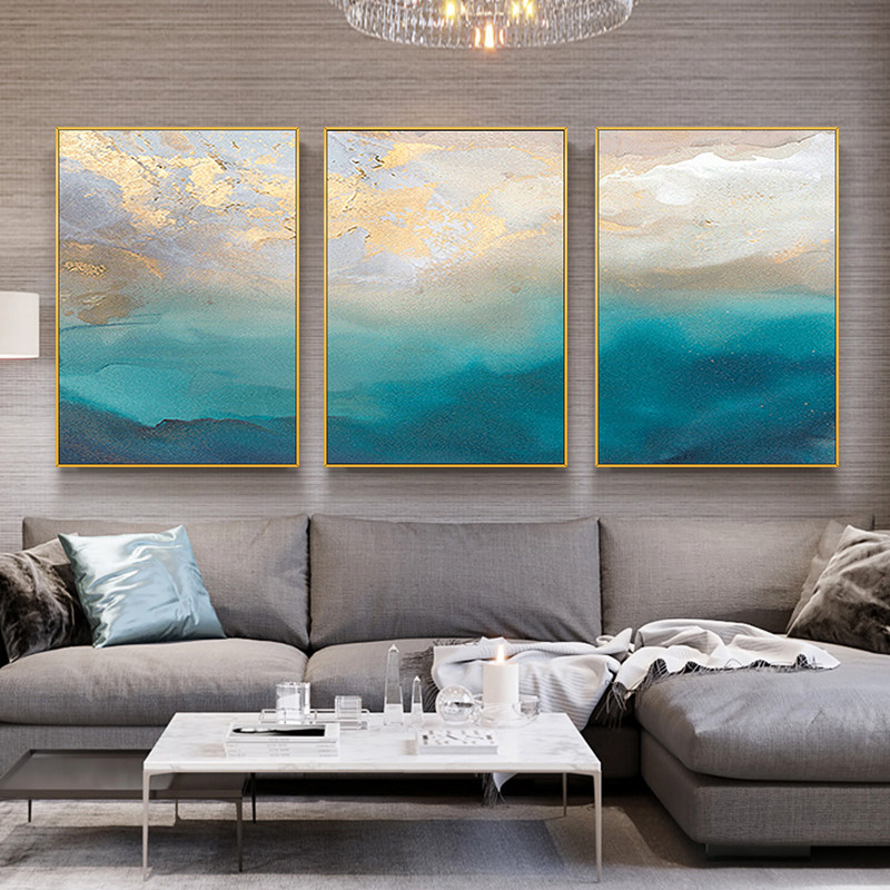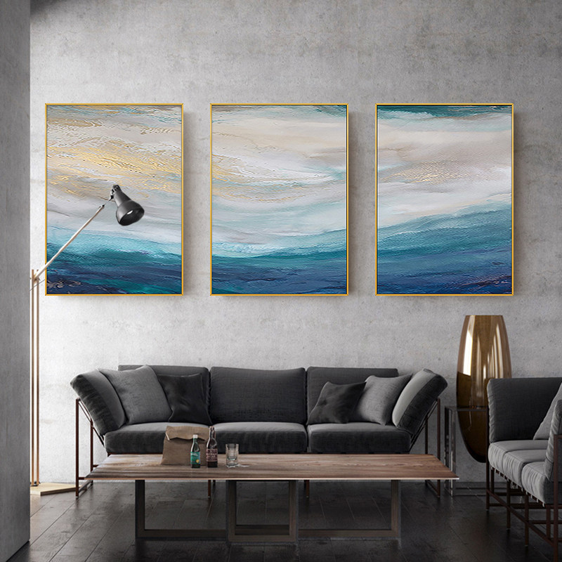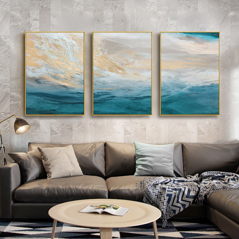 Hand-painted Abstract Oil Painting Drawing Room Minimalist Triplex Decoration Painting Golden Beauty Sky Eurostyle Genguan American Living-room Hanging Painting