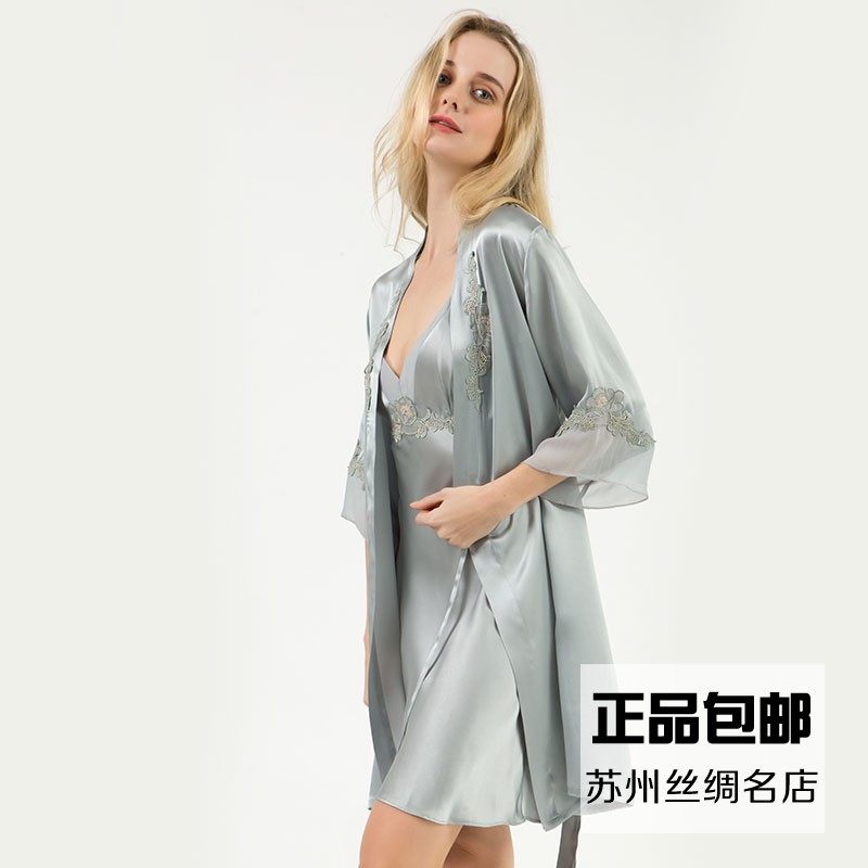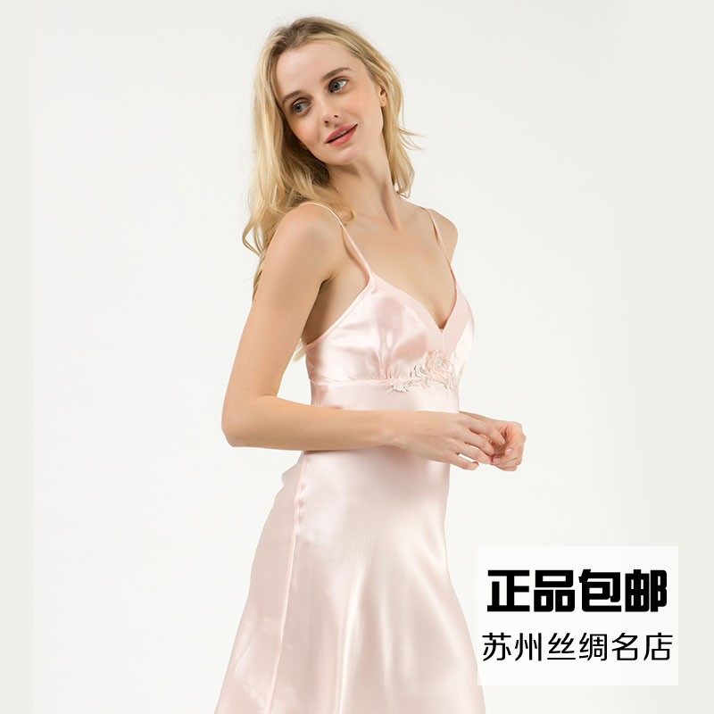 Suzhou Dimension silk pajamas Mulberry silk embroidered sexy spring and summer suspender nightgown nightgown two-piece home wear