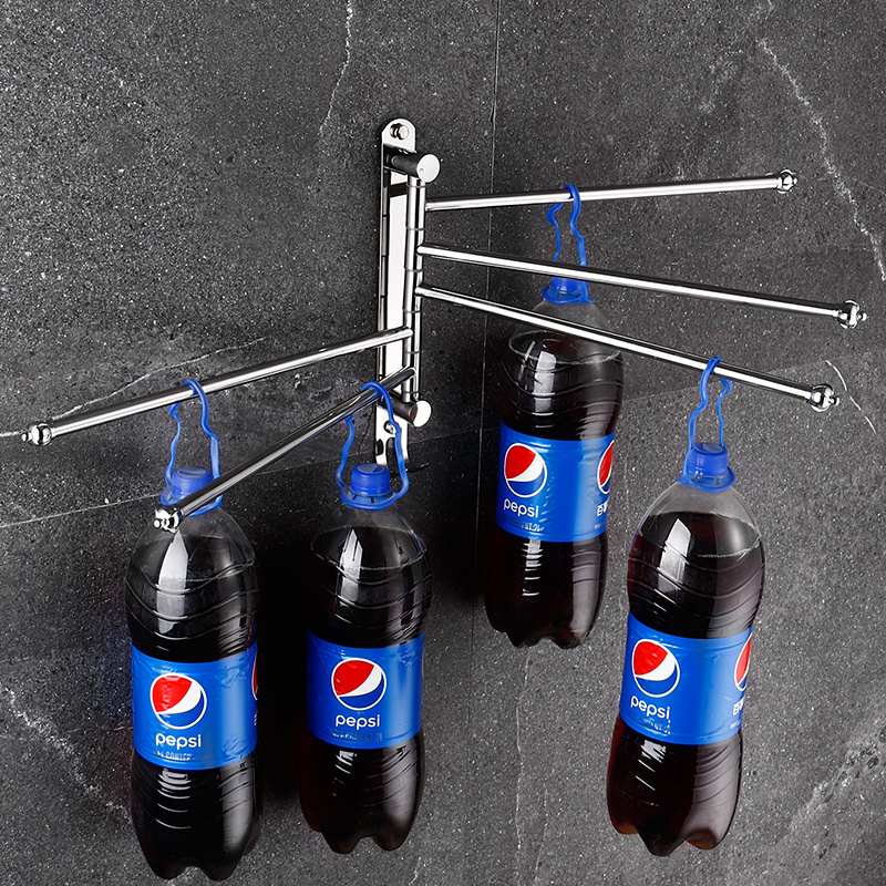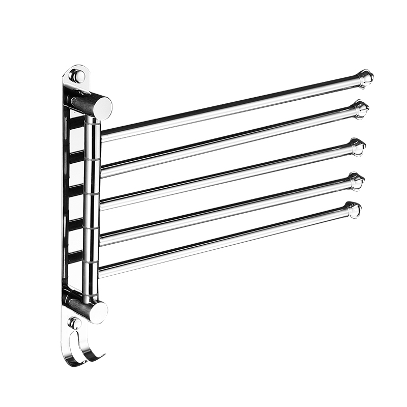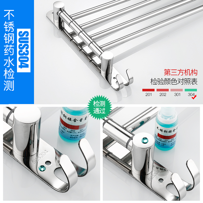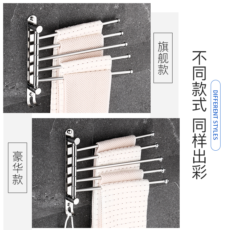 304 stainless steel movable rotating towel bar Towel rack punch-free powder room bathroom shelf folding double rod