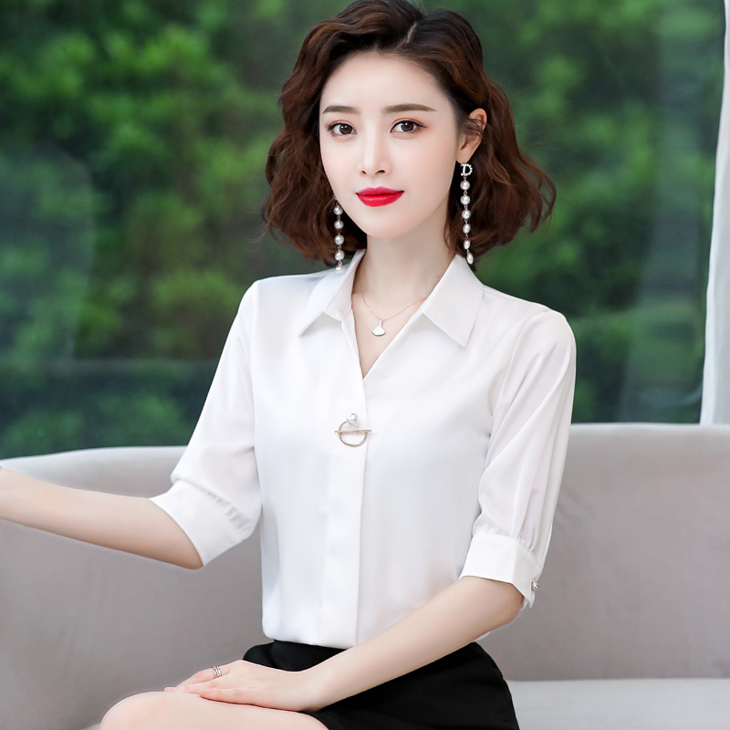 Snowspun Shirt Woman Summer Short Sleeve 2022 Spring Dress New Career Foreign Pie Workwear White Shirt Summer Blouse