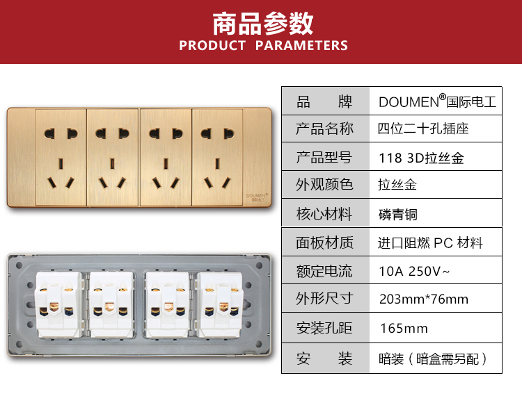 International electrician 118 type concealed combination brushed gold switch socket panel package four twenty-hole socket