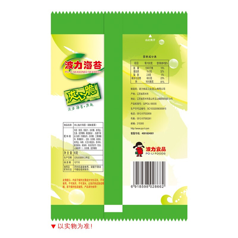 Polli Sea Moss Sandwich Crisp Bagged 6g * 20 Packs Ready-to-eat Purple Vegetable Original Taste Sea Tundra Celiac Children Snack Snack-Taobao