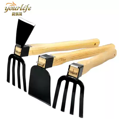 Garden outdoor rakes Agricultural garden gardening tools weeding grass grass vegetable turning short wooden handle farm tools small hoe