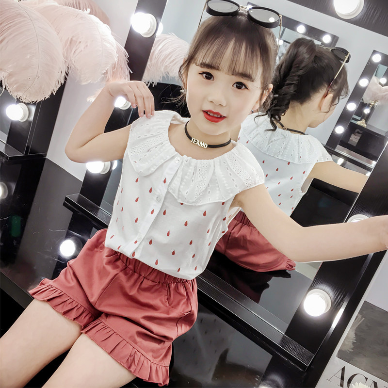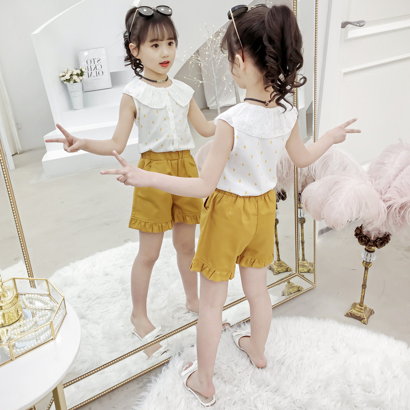 Girl's Summer Suit 2022 New Korean Version Fashion Doll Cardiovert Two Sets Wave Girls Summer Clothes