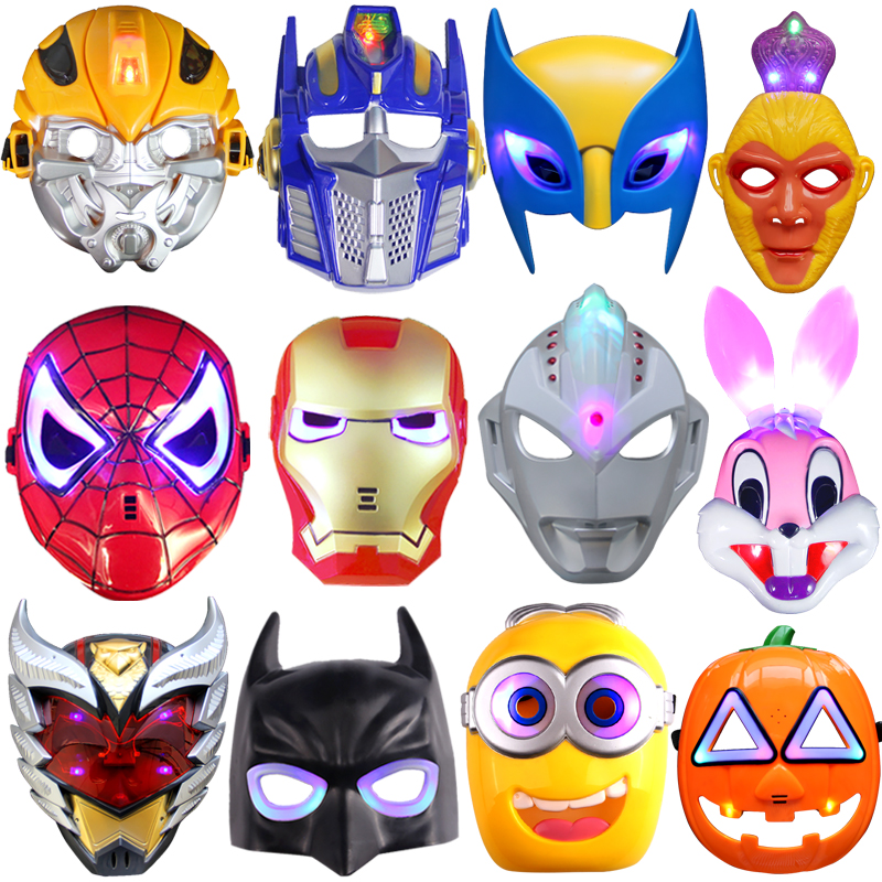 New Halloween mask male and female children cartoon Ottmann Spiderman Rabbit mask luminous cartoon toy