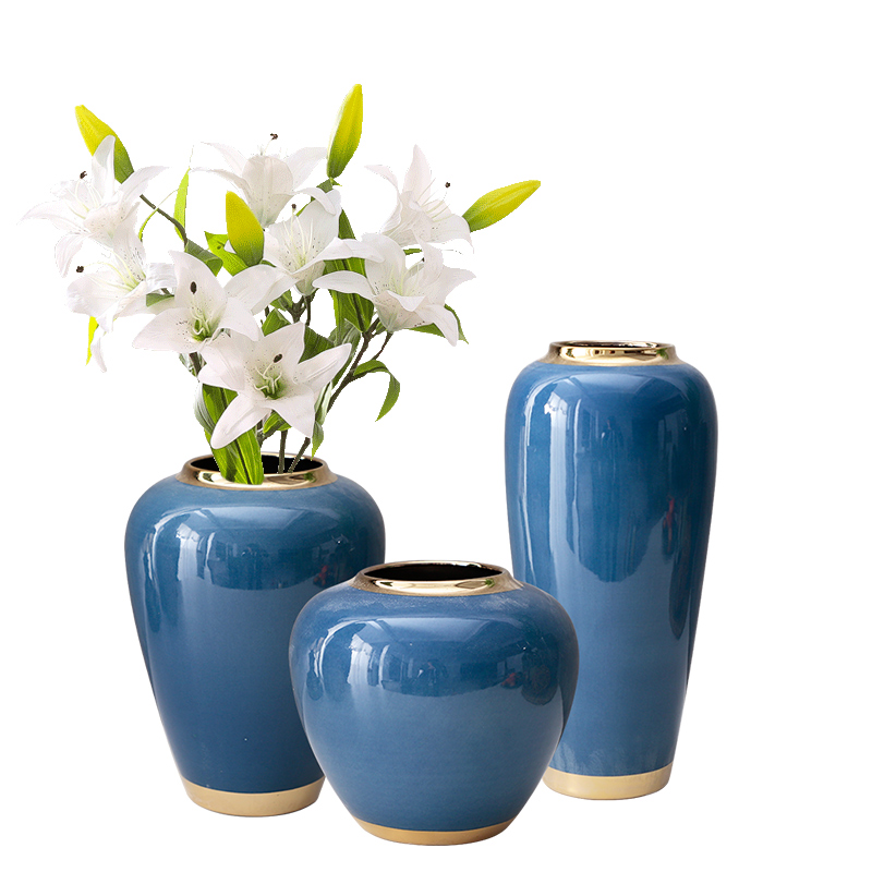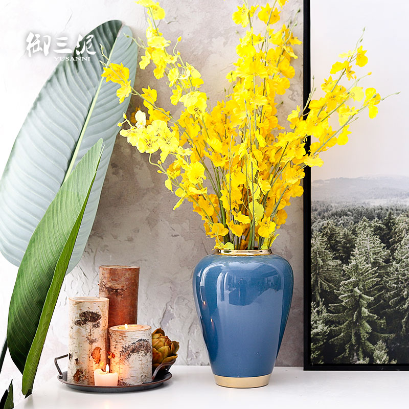 Living room flower set with dry flowers simple modern home decoration European ceramic vase fitting blue pottery cans
