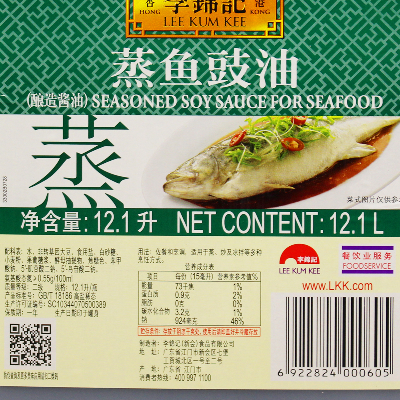 Lee Kum Kee Steamed Fish Soy Sauce 12 1L a barrel of hotel commercial affordable large barrel of steamed fish soy Sauce