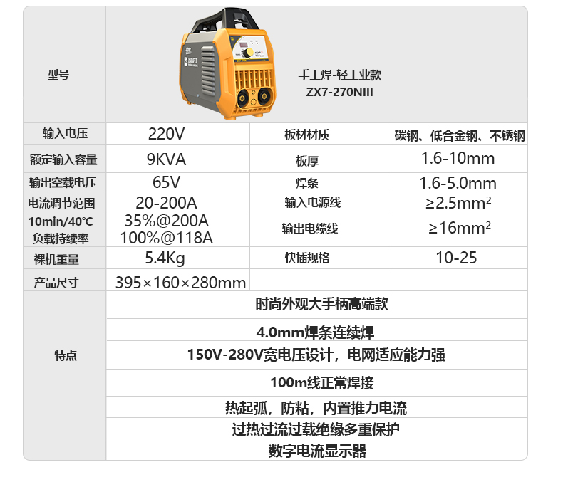 Upgrade (ZX7-270NIII -- official standard) Upgrade (ZX7-270NIII -- Package 1) 1 2 meters connected to the ground wire 1 8 meters welding wire