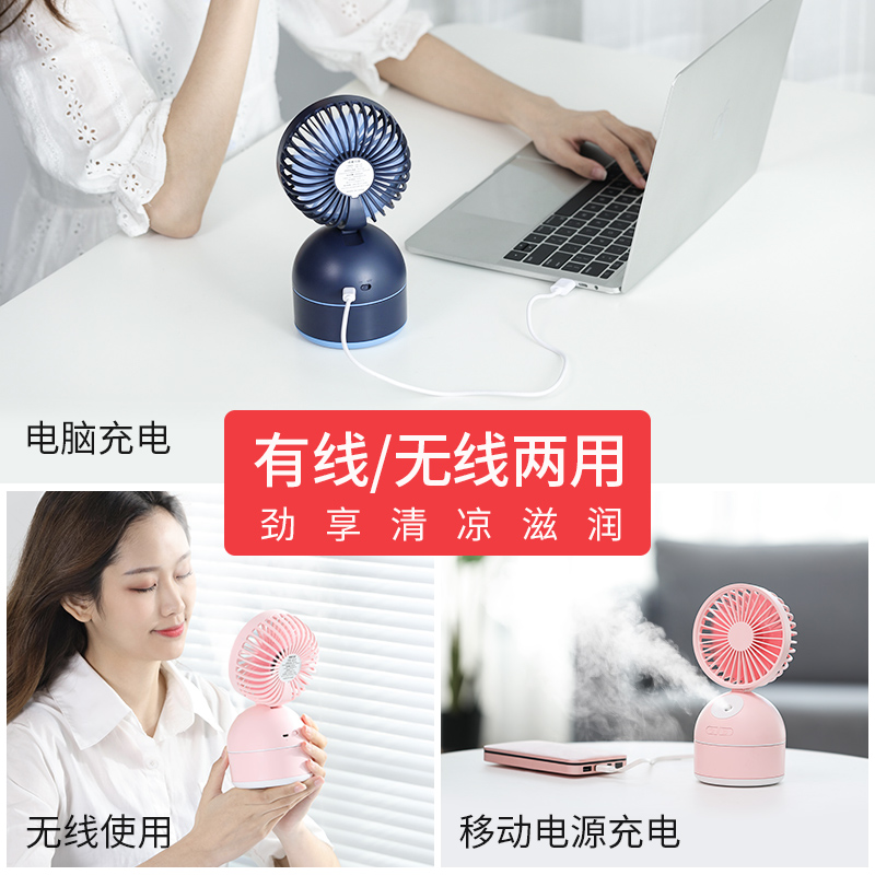 Desktop Small Fan Spray Refrigeration Usb Charging Portable Large Wind Student Dormitory Moisturizing Shake Soundbites Wireless Handheld Mini Small Car Electric Fan Desktop Mute Office Table