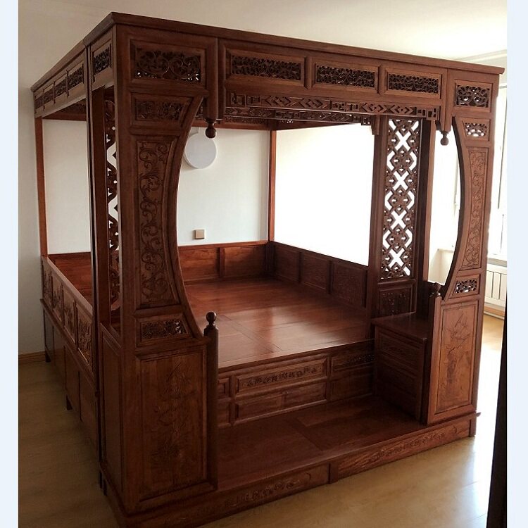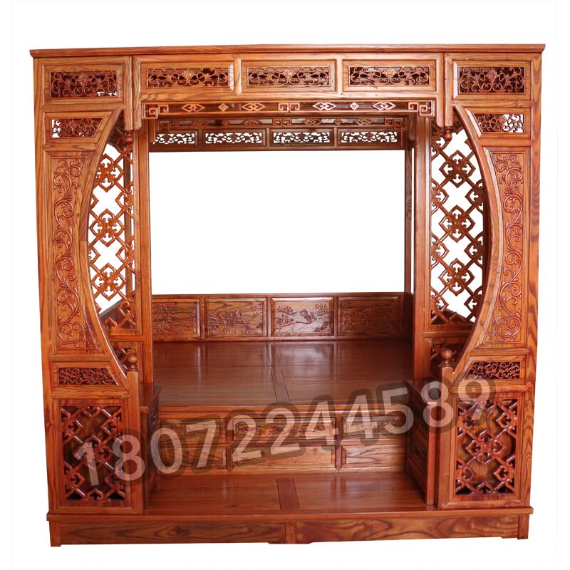 Moon cave bed ancient pull-out bed Nan wood shelf bed rosette color rural old-fashioned bed court antique bed Ming and Qing dynasty large bed