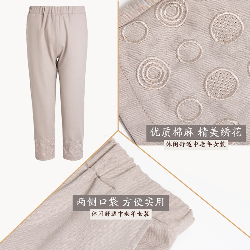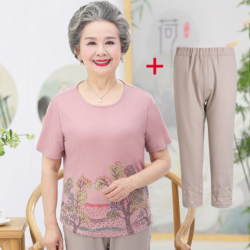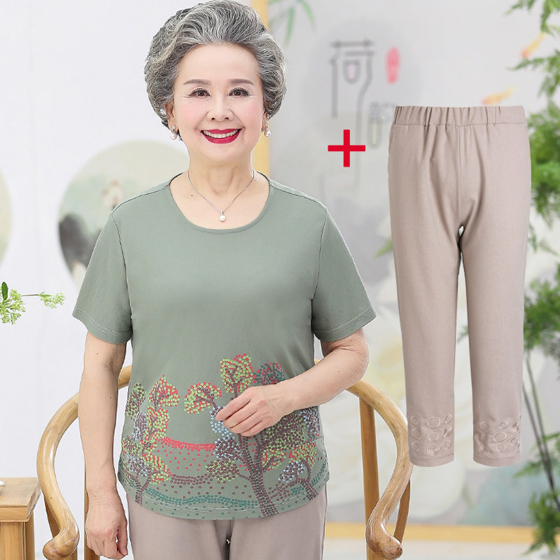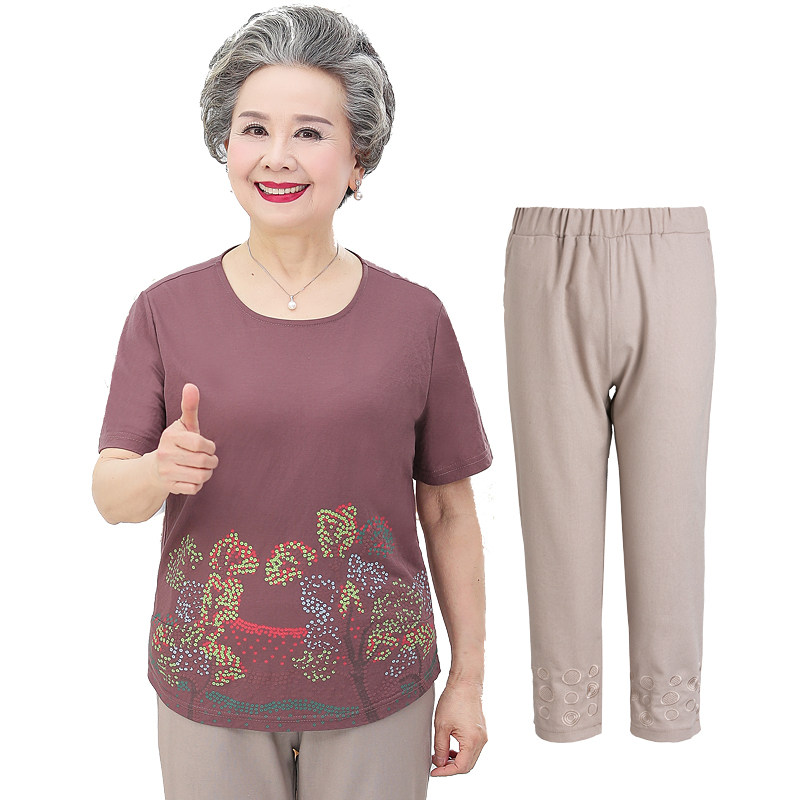 Mid-age summer dress suit Grandma dress short sleeve T-shirt 60-70 year old clothes women's mother dress cotton linen two sets