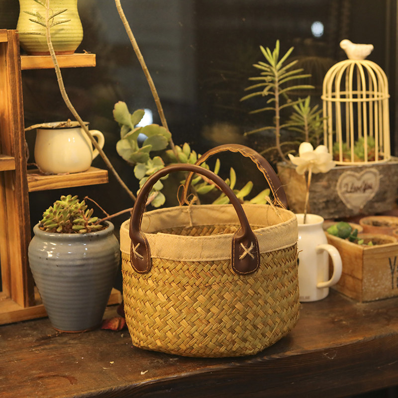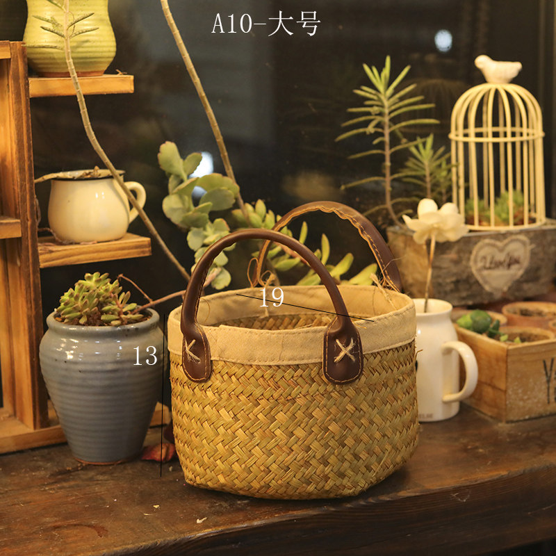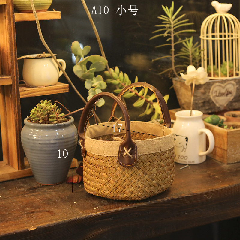 Flower basket rattan hand basket photo props storage basket straw desktop living room creative Nordic retro flower decoration
