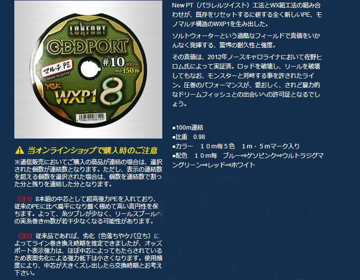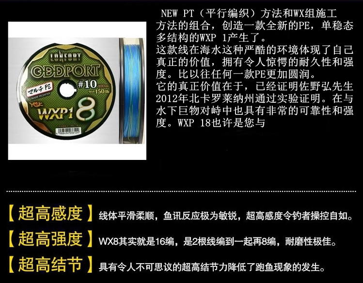 Japan original YGK ODDPORT WXP18 100 meters even plate No. 3-12 PT boat fishing line braided line PE line
