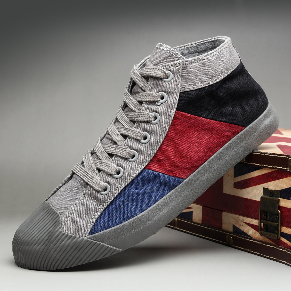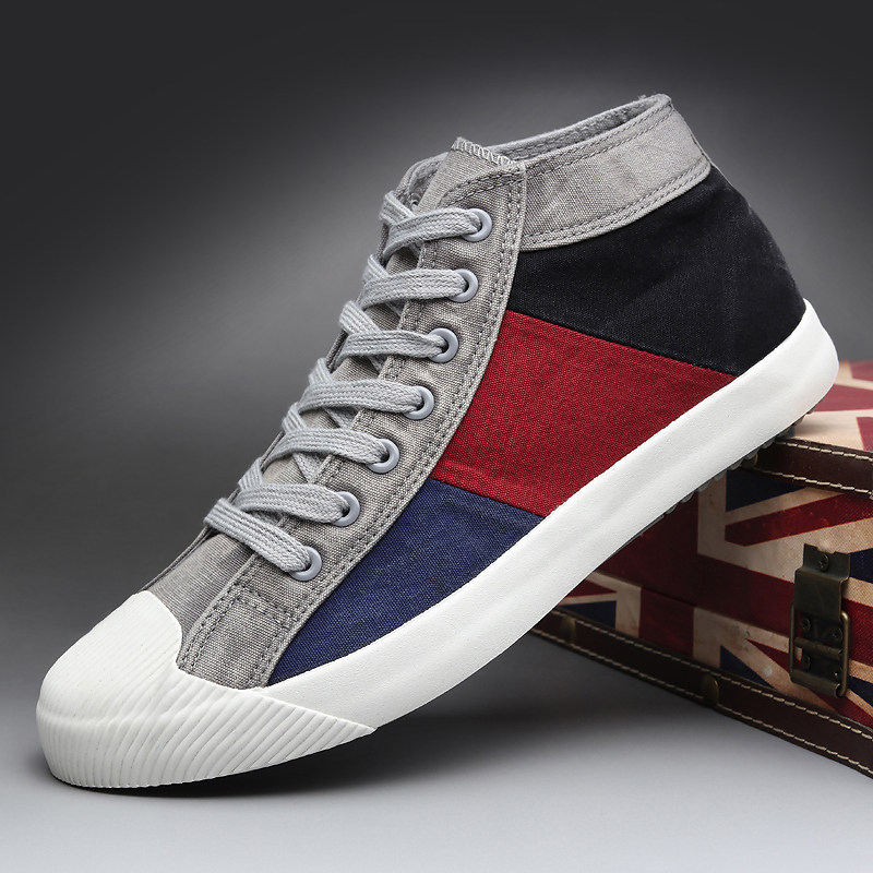 2022 autumn new casual high-top canvas shoes men's breathable Korean version trend all-match color matching board shoes trendy men's shoes