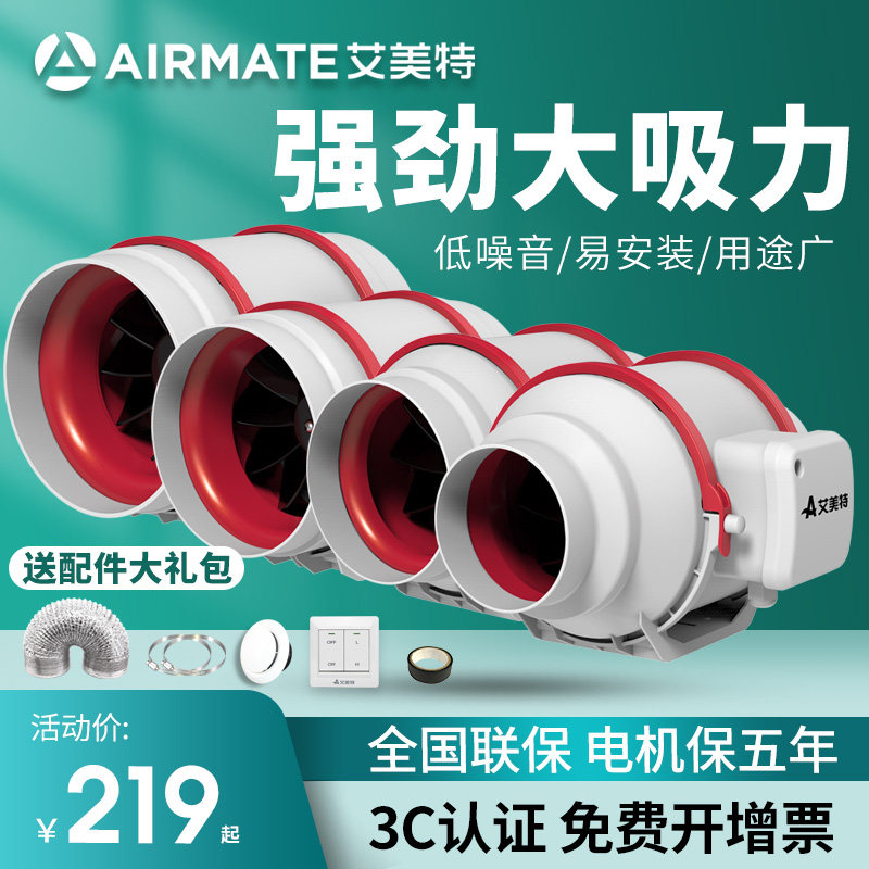 Aimette Exhaust Fan Duct Ventilator Powerful Quiet Ventilator Booster Kitchen Smoke High Power Powerful Exhaust Fan