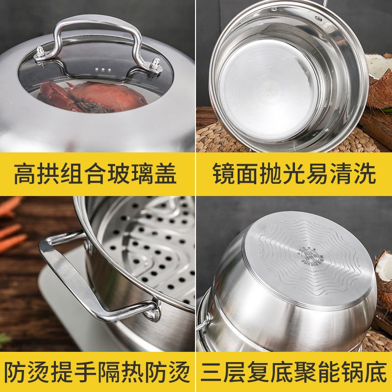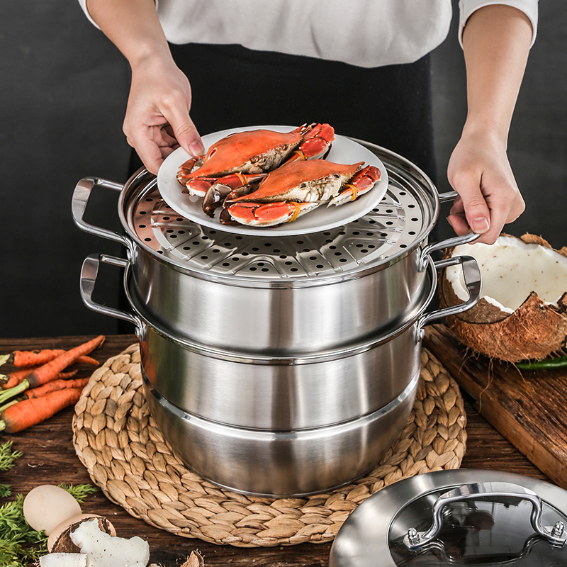 Steamer 304 stainless steel three-layer thickened multi-layer steamer steamed bun household 1-layer 2-layer two-layer seafood steamer
