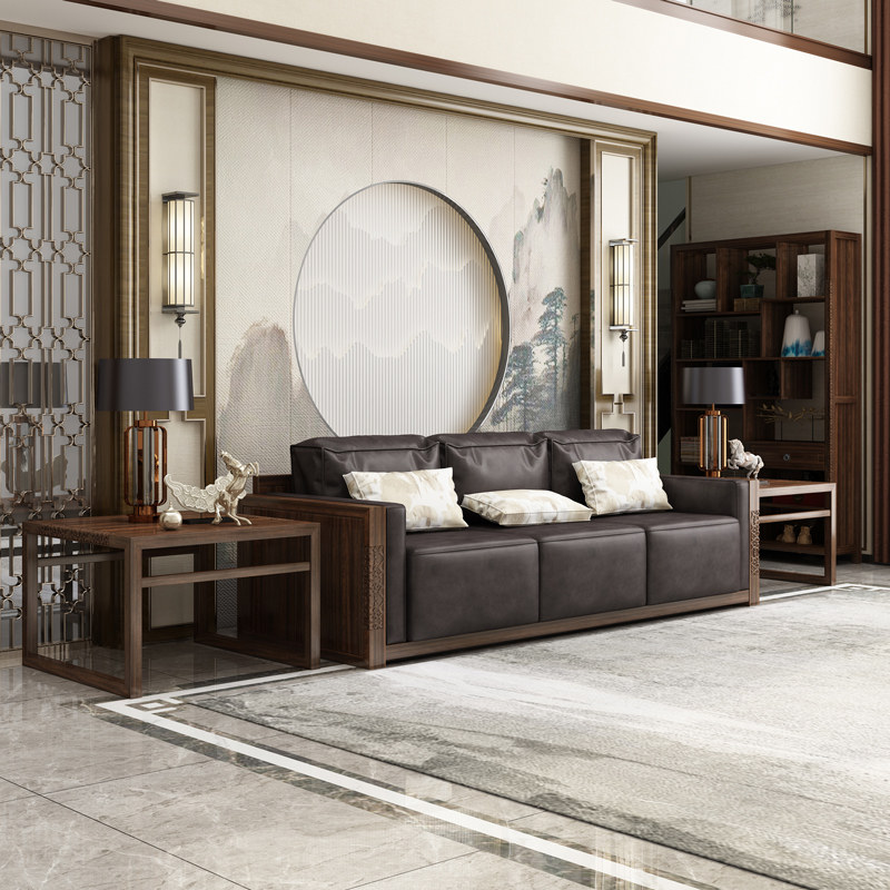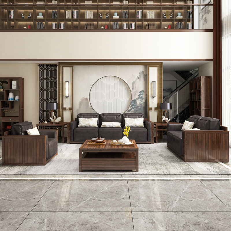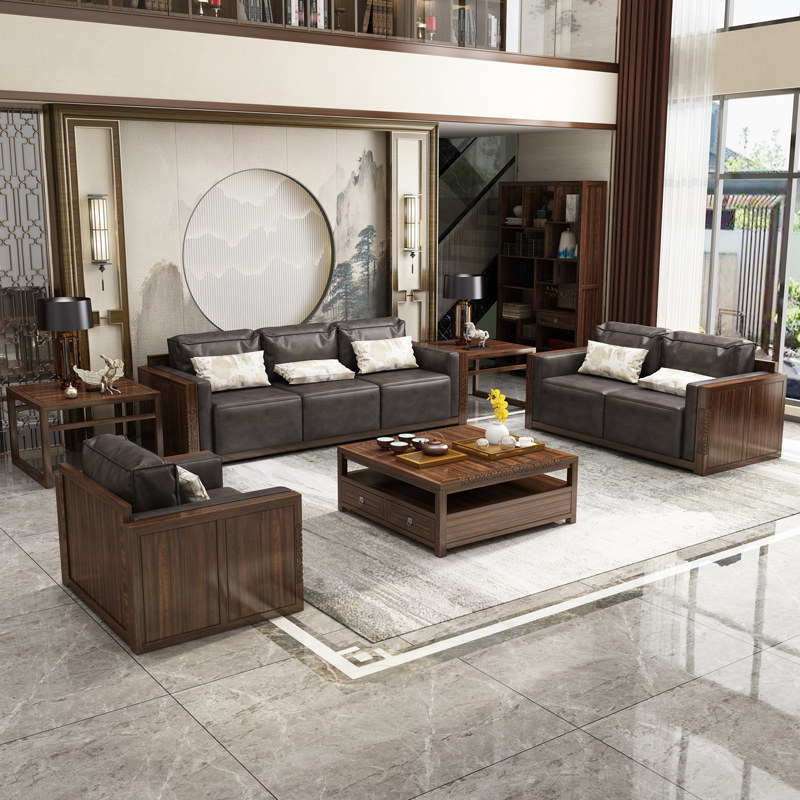 New Chinese-style sofa villa simple Daping number living room combination all solid wood set Zen ebony Chinese furniture