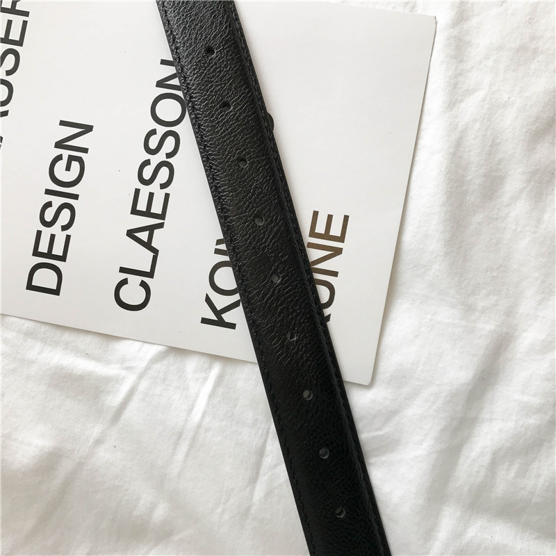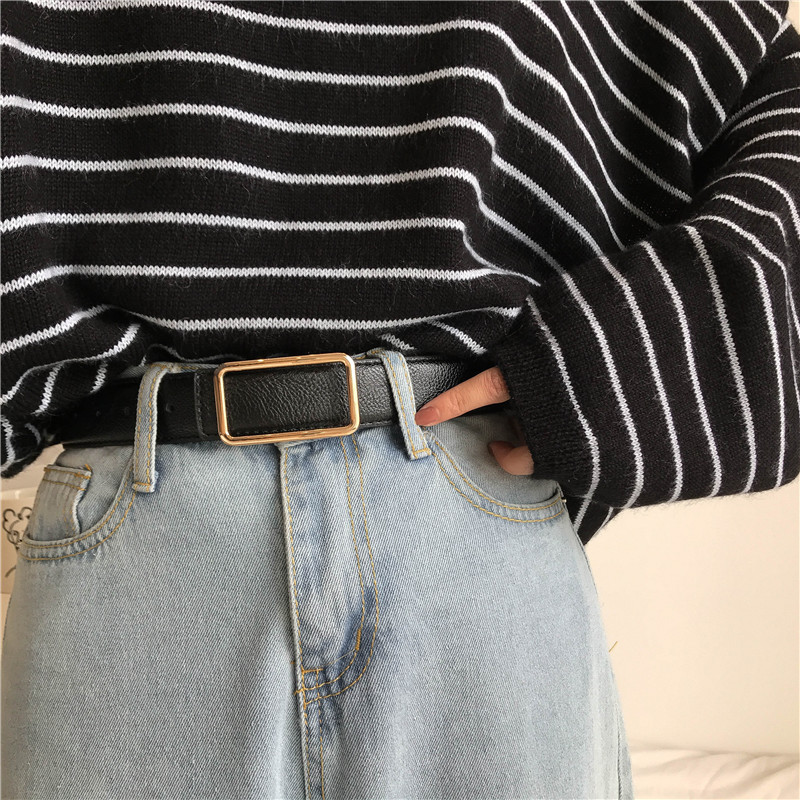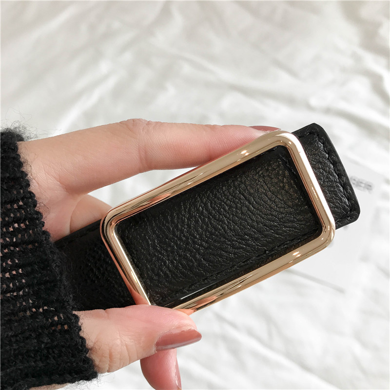 Retro Korean CHIC rectangular all-match black belt women's smooth hidden buckle belt student wide jeans with tide