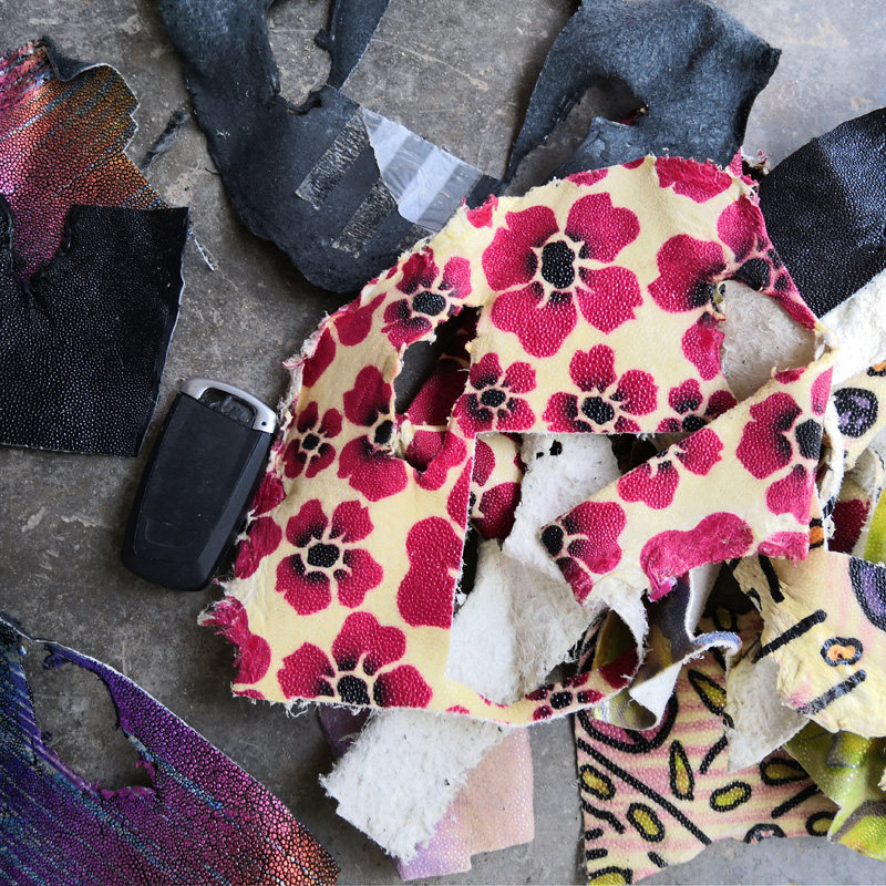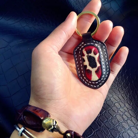 Colored pearl fish cruisers according to catty, no grinders Devil Fish Leather DIY Bag Bow Key Bag Inlaid Leather