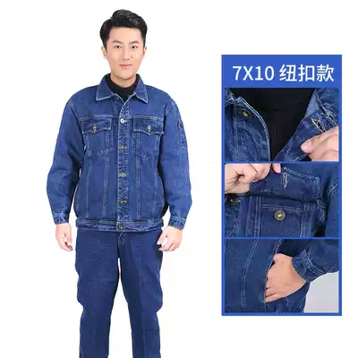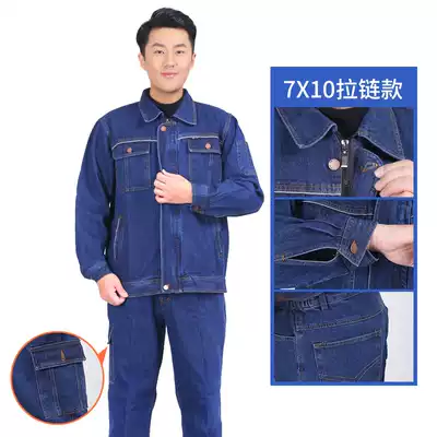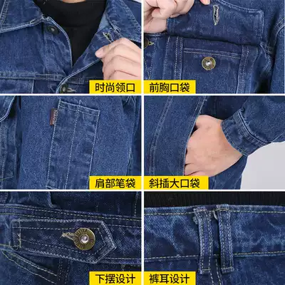 Cotton denim overalls suit men's labor insurance clothing wear-resistant welding anti-scalding and flame-retardant tooling electrician auto repair welding suit