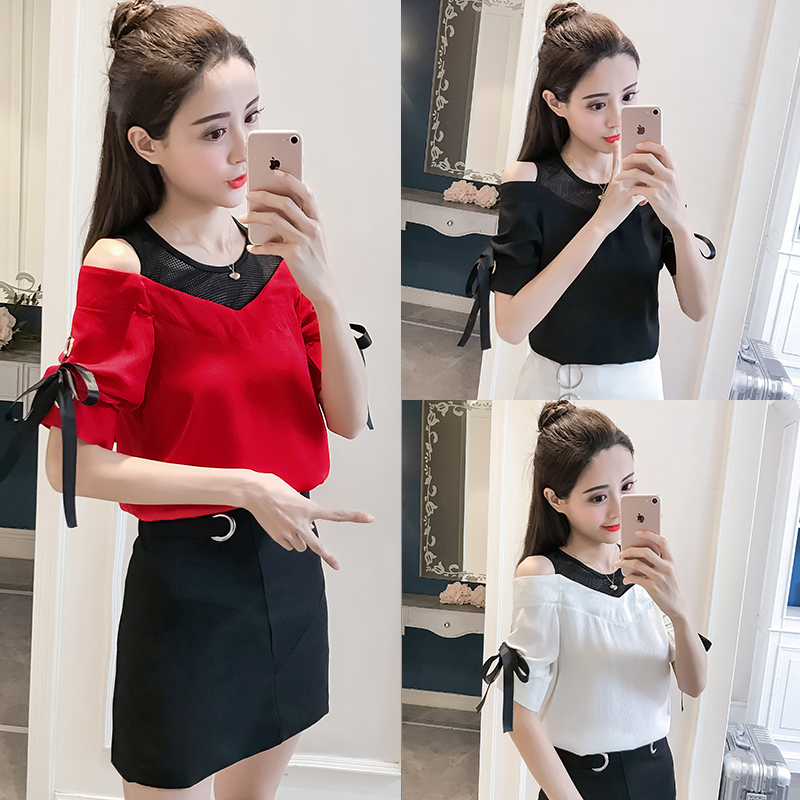 2022 Summer New Pinned jacket Head short sleeve snow-spinning Shirt Dress Temperament Butterfly Knots stitching Shoulder Clothes