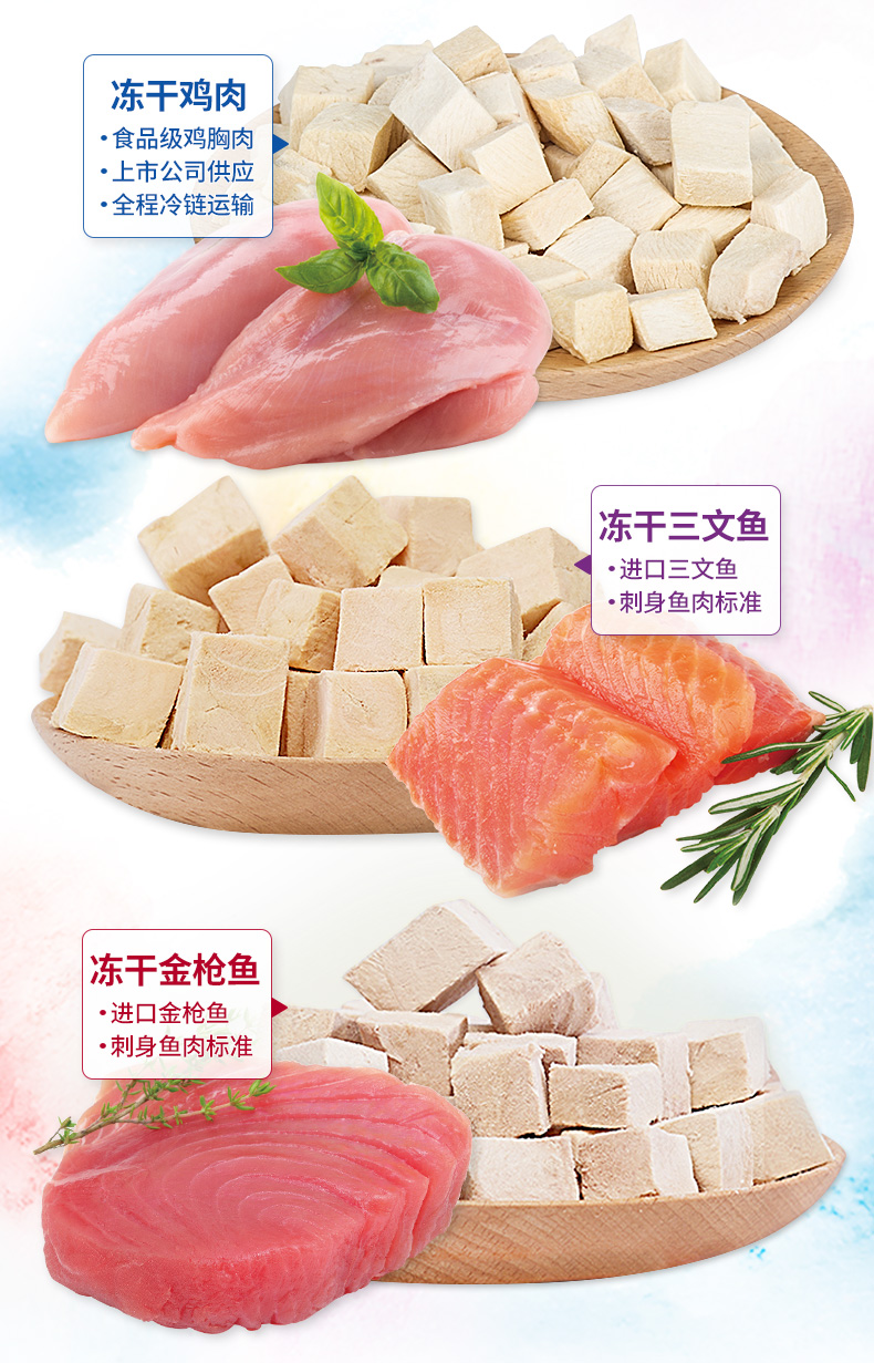 Freeze-dried chicken 70g Freeze-dried duck 70g Freeze-dried chicken heart 60g