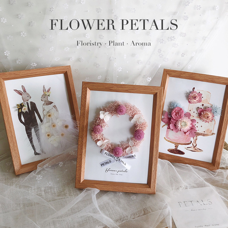 (Photo frame dry flower)Small romance(photo frame dry flower)Green hydrangea (photo frame dry flower) Kapok (photo frame dry flower) Cake (photo frame dry flower) Pink garland (photo frame dry flower)Green flower