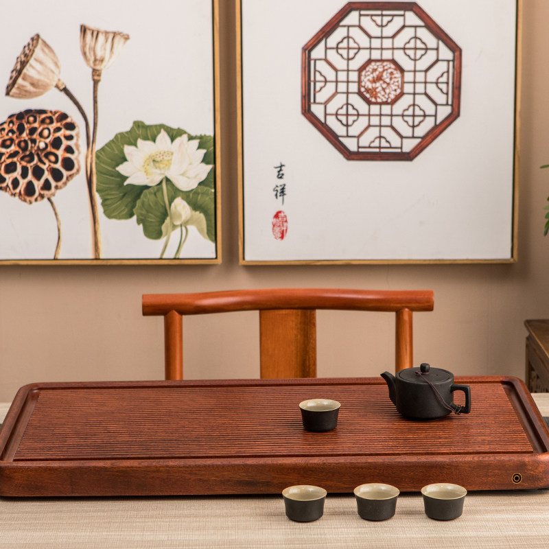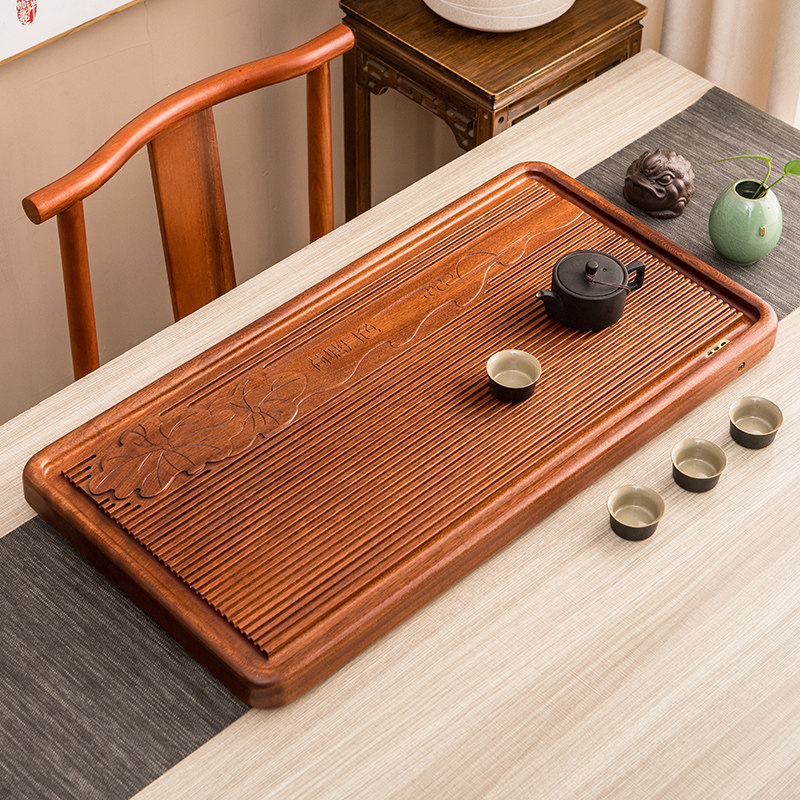 Whole piece of solid wood tea tray Rosewood household tea table simple kung fu tea set Tea Sea large log drainage tea tray
