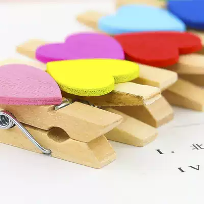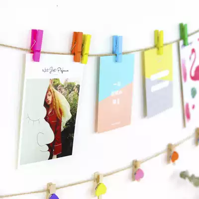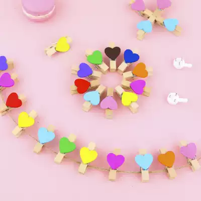 Creative photo clip color wooden clip Love wedding small wooden clip clip Photo wall decoration hemp rope Photo clip Hemp rope wall dormitory ins wind room Birthday decoration Flower shop clip card
