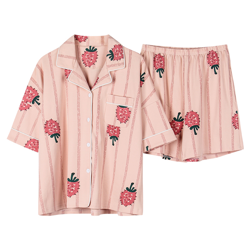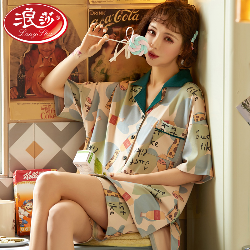 Langsha shirt pajamas women's summer thin cotton short-sleeved shorts two-piece suit spring and summer cute home service women