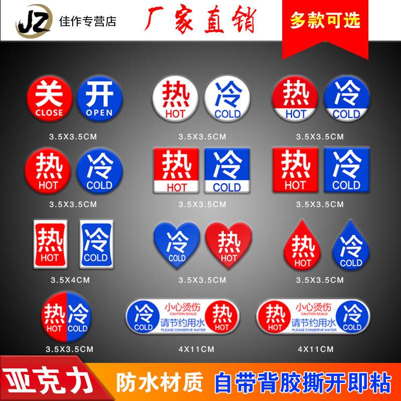 Hot and cold water logo sticker COLD WATER COLD WATER SIGN BOARD MAKEUP ROOM TAP RED BLUE NOTICE STICKER MARK SIGN SMALL NUMBER HOTEL SWITCH LABEL NAMEPLATE BATHROOM HOME WATER MIXING VALVE ACRYLIC