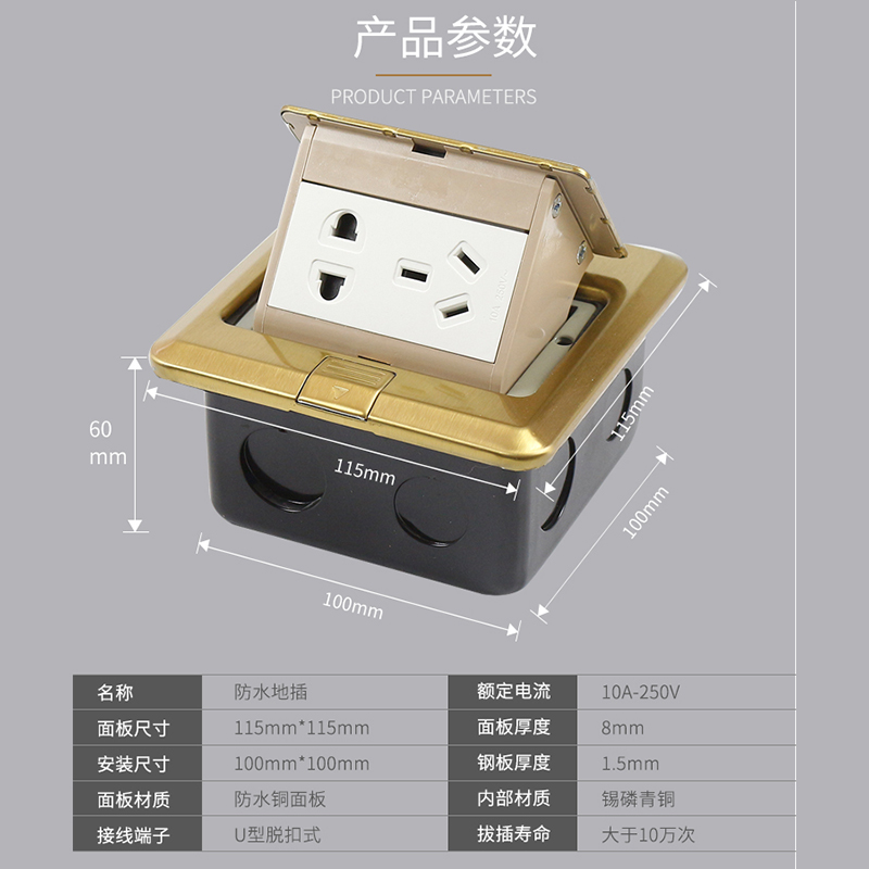Four-way Sunday Ground Socket Waterproof Quick Bomb Five Holes Ground Floor Bounce Type Down Single Delivery Iron Bottom Case