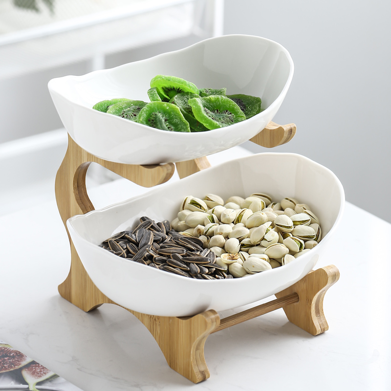 Multi-layer ceramic fruit plate Nordic simple dried fruit plate home living room new Chinese porch key tray storage basin