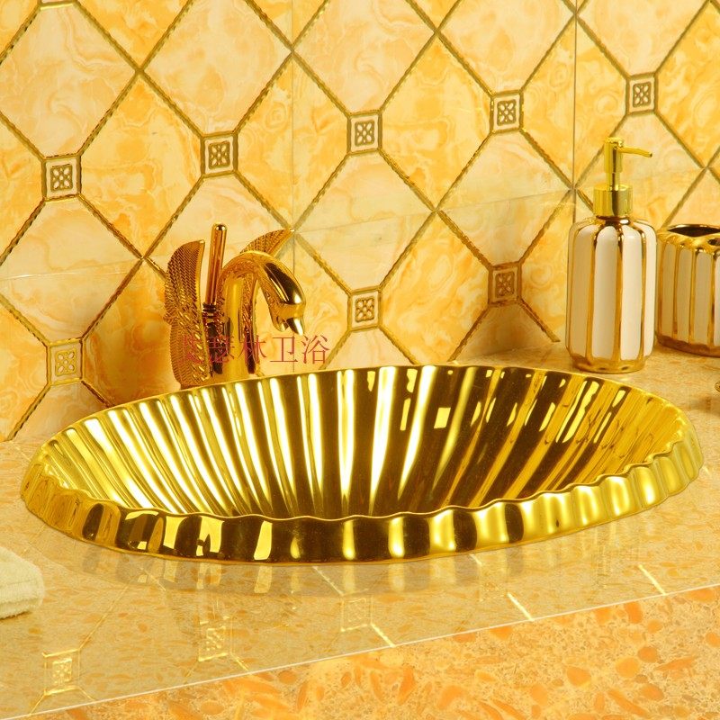 European style semi-embedded ceramic gold washbasin Washbasin Under the table basin Oval Taichung basin On the table basin Basin