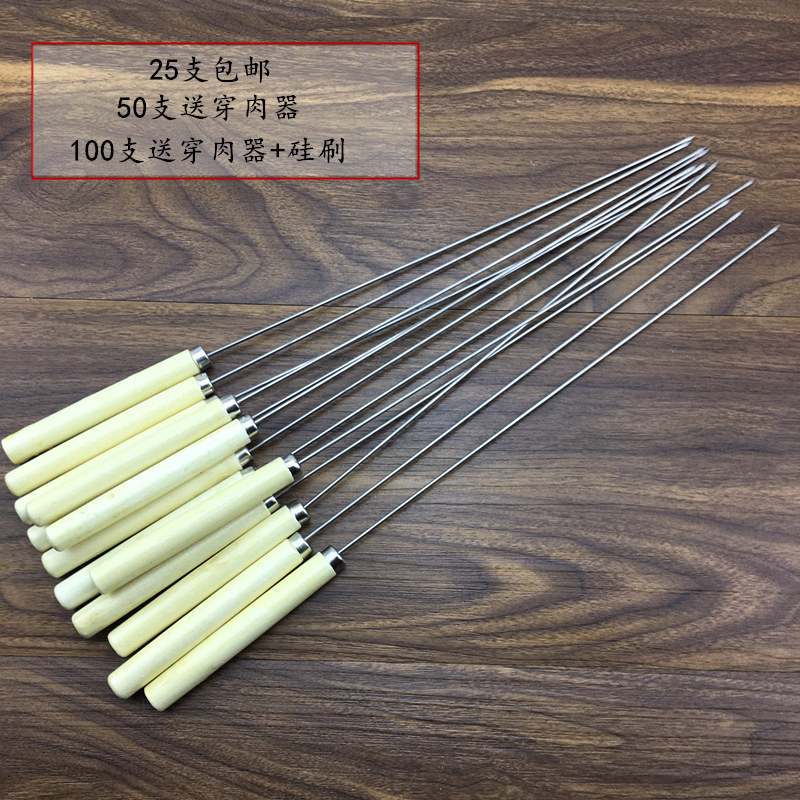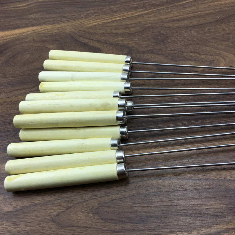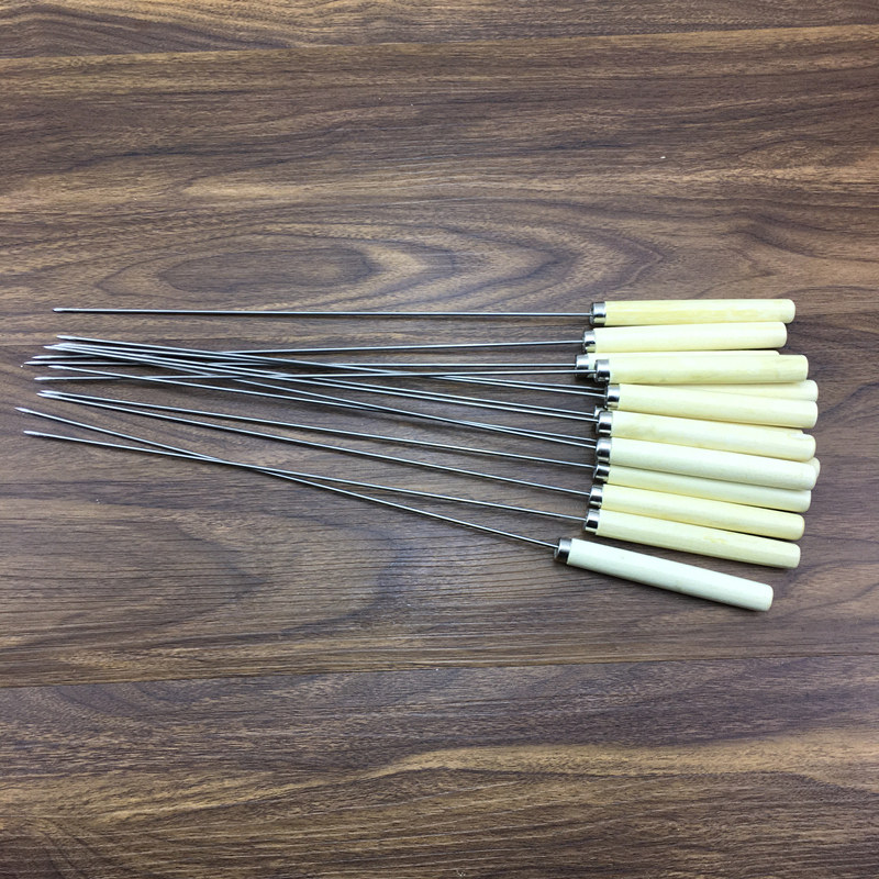 Stainless Steel Wood Handle Sign Goat Meat String Barbecue Sign Outdoor Barbecue Needle Grilled Steel Needle Iron Sign Baking String Tool