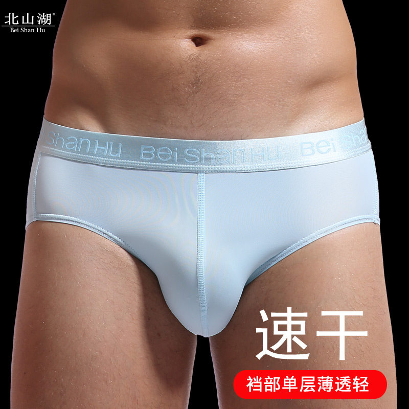 3 summer ice silk men's briefs single layer crotch ultra-thin transparent sexy breathable sports underwear men