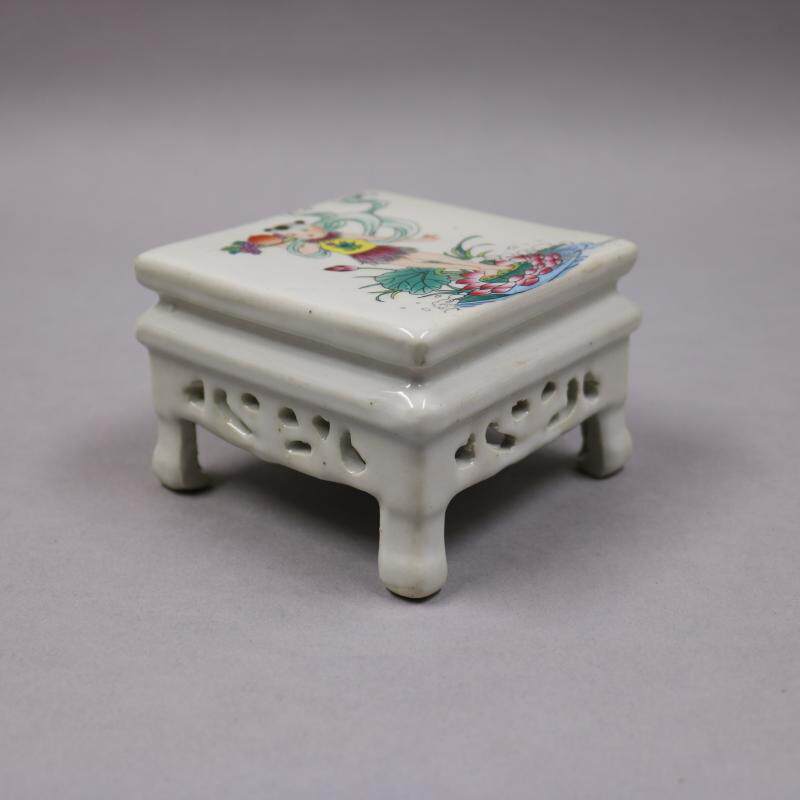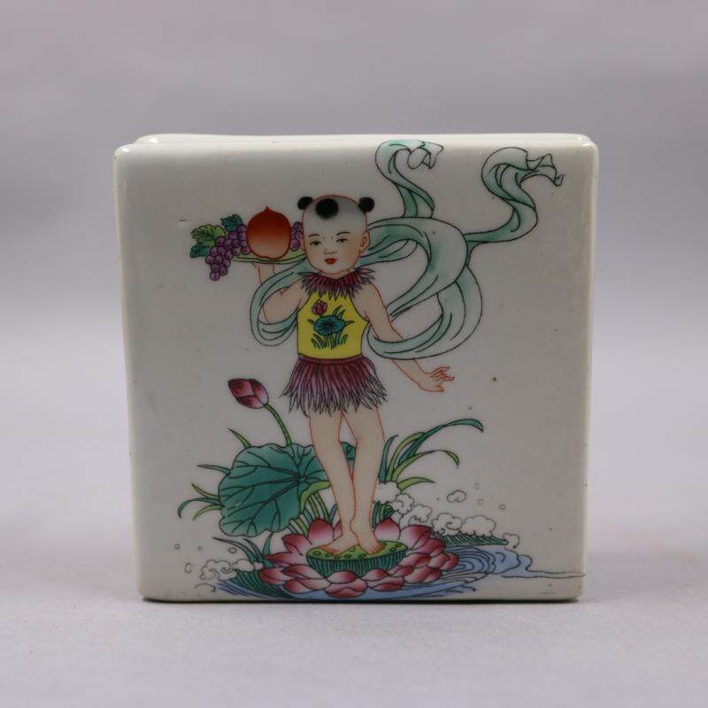 Republic of China famille rose boy character hollow flower pot holder eight fairy desk antique porcelain antique second-hand goods