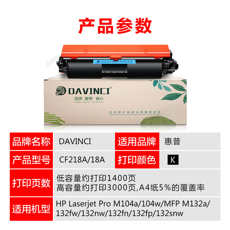 Davensey applies HP CF218A powder box M104a w sunburn M132a snw fn fp printing machine 18A cartridges CF219A HP Las