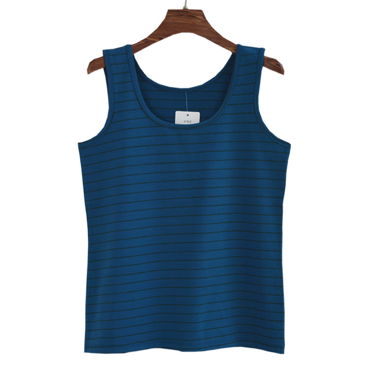 Striped large size women's printed Lycra cotton elastic wide shoulder vest green middle-aged and elderly close-fitting bottoming sleeveless shirt underwear