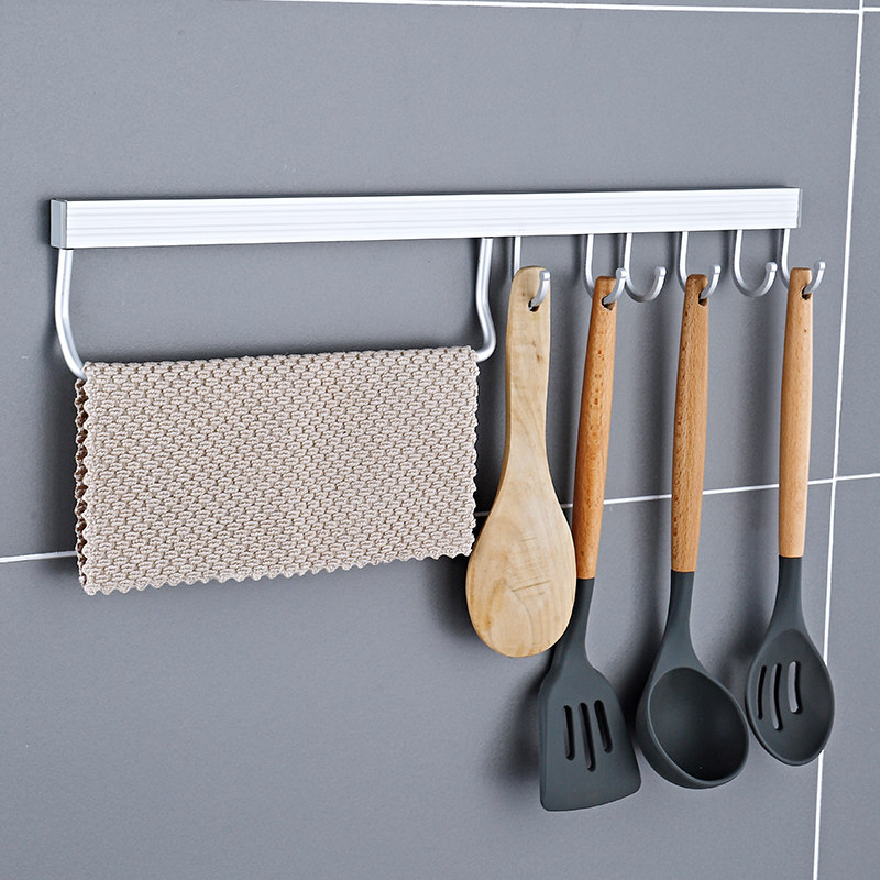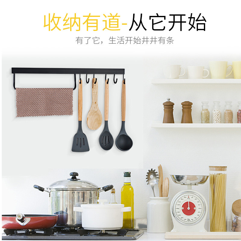 Kitchen rag rack towel hanging rod punch-free kitchen and toilet rack wall hanging hook storage artifact row hook spatula rack
