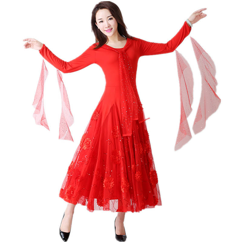 Waltz Dance Suit Foreign Dress Square Dance Length Dress Women's Big Size Morden Dance Big Swing Dress Competition Performance Practice Suit