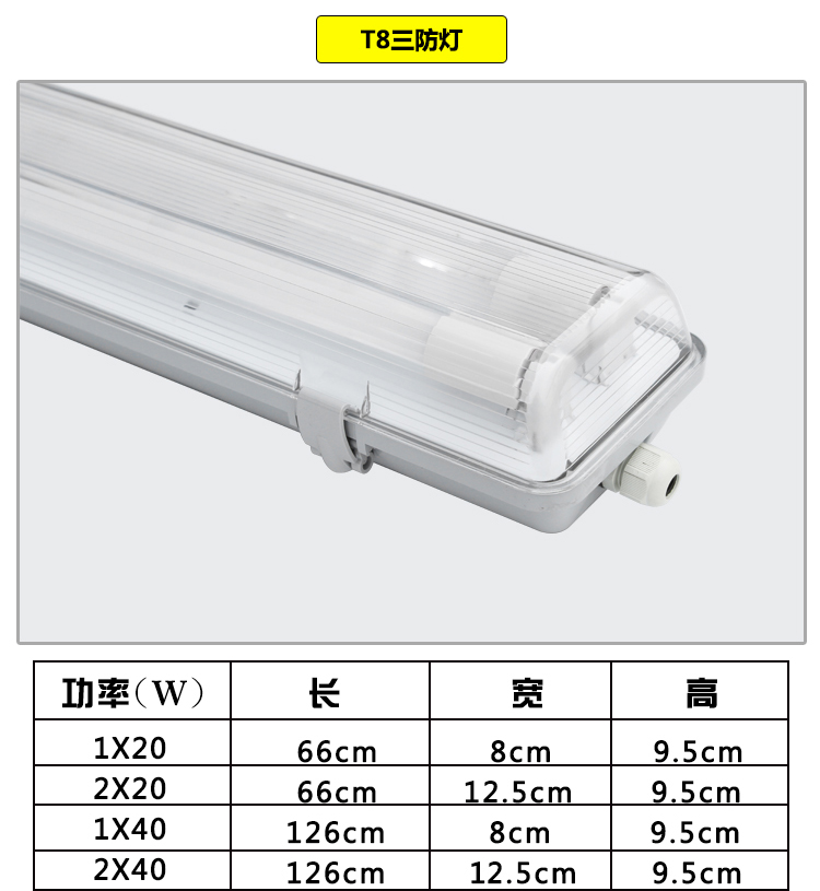 T8 tri-proof light led full set of waterproof IP65 dustproof explosion-proof tunnel full PC double tube with cover fluorescent lamp stand direct sales