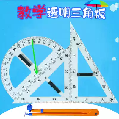 Magnetic large teaching ruler set plastic triangle plate protractor compasses demonstration primary school mathematics teaching aids school classroom blackboard demonstration magnetic adsorption yellow transparent optional